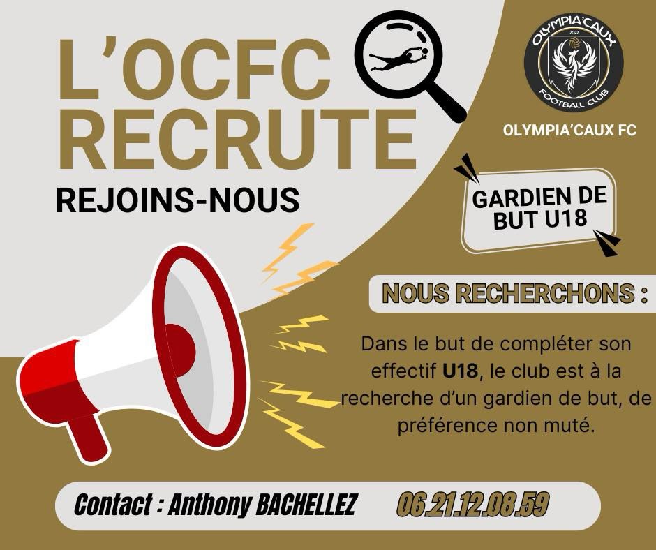 J'ai pris connaissance de votre annonce de recrutement pour un gardien de but au sein du groupe U18 d'Olympia'Caux FC, publiée le 20/12/2025.